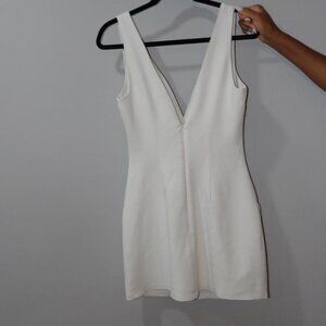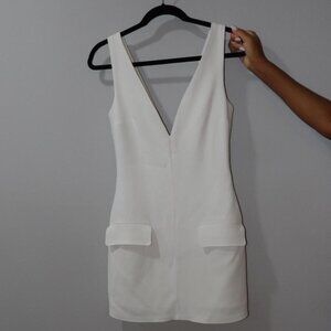 House of CB Olympia Dress. Size Small. White. Worn once and dry cleaned. Beautifully constructed, form fitting stretch dress that flatters the body. The sleek silhouette is set off by decorative flap pockets with plunging neck. Has internal side boning for added structure and it zips to the back for easy on.