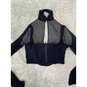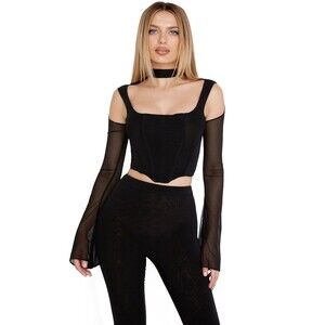 House of CB Paulina Cut Out Bell Sleeve Mesh Corset Top Size L Black High Collar