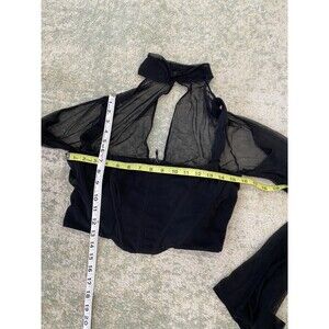 Pre-owned. Good condition. Corset, Mesh, Wire, Bell Sleeve, Belle, Black, Sheer, Festival, Goth, Emo, Vampire, Witch, Rave. W0172