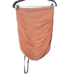 House of CB Peach Aubrey Gathered Mesh Mini Skirt NWT Size L+