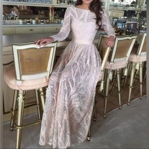 House of CB Peach pink Lucya long sleeve sequin limited edition gown S