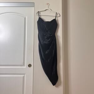 The straps are adjustable can be worn without a bra as the internal corset is supportive and even has our side boning for uplift and cleavage. The top layer has a draped neckline. The Skirt is fully lined in self fabric. It has stitched gathers to the hips so that the skirt drapes across the hips and teases open at the front slit for just a flash of thigh. This is suitable for bigger or smaller busts as it does not have cups but has a balconette cut.