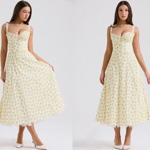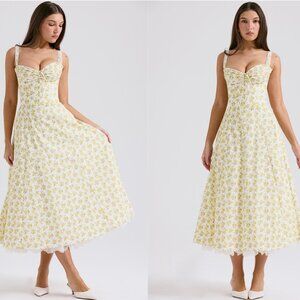 House of CB ‘Rosalee’ White Vintage Floral Print Cotton Bustier Sundress