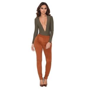 House of CB Sazan Faux Suede Skinny Leggings Side Zip Tan Women's Size XS/S NWT