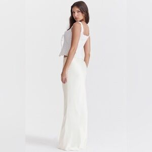 House of CB Sydel White Satin Bias Cut Maxi Skirt, Large
