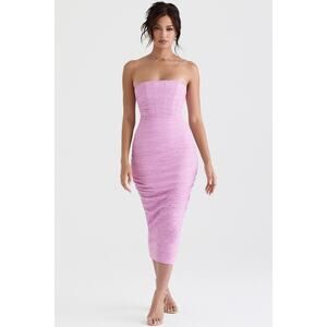 House of CB Tana Pink Strapless Corset Midi Dress Size XS Extra Small