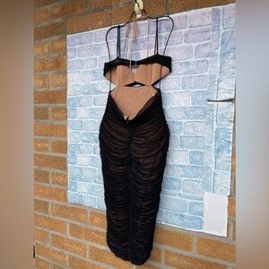 House of CB Tibi Black Cutout Ruched Midi Dress large