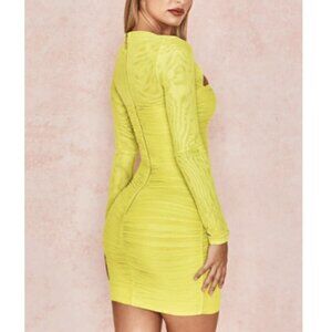 New With Tags House of CB Valentina Ruched Long Sleeve Dress in Yellow sz XS