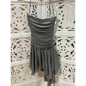 House of CB Valeria Smoke Gathered Asymmetric Dress Strapless Size XS Extra Small