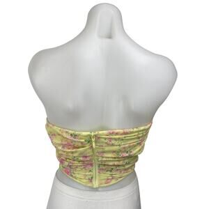 House of CB Vivienne Yellow Floral Strapless Drape Corset Bustier Crop Top XS