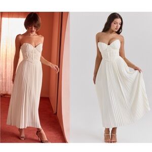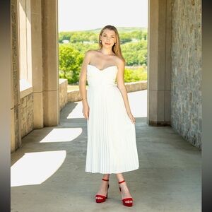 Elegant white midi dress by House of CB. Strapless design with pleated details. Perfect for any occasion. Worn once for my rehearsal dinner, very bridal. Like new condition.