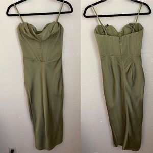 House of CB XS D-DD Myrna Olive green Corset Slip Dress NWOT size XS