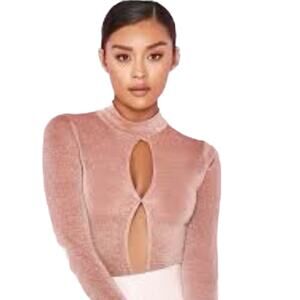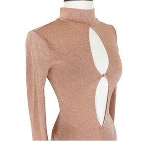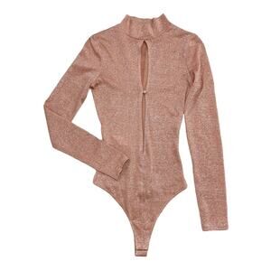 House of CB metallic bodysuit top Concha pink keyhole mock neck long sleeve XS
