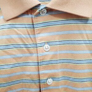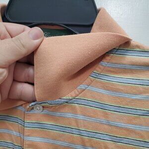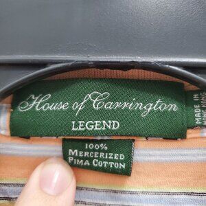 House of Carrington Legend Men's Orange Blue Stripe Mercerized Cotton Polo Sz L