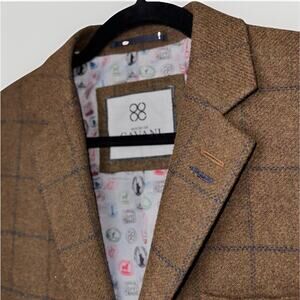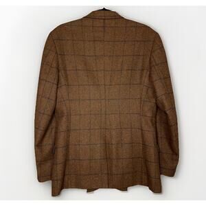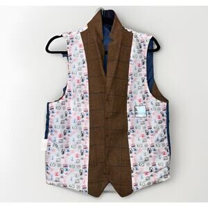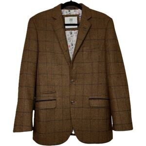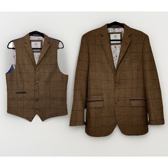 House of Cavani Wool Mix 38 Blazer Jacket Vest Waistcoat Brown Blue Plaid 2pc