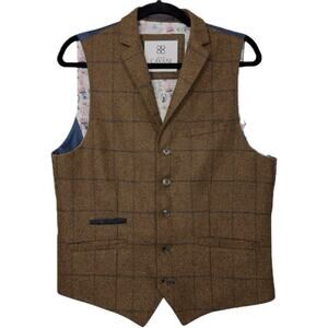 The House of Cavani Wool Mix 38 Blazer Jacket Vest Waistcoat in brown and blue plaid is a stylish and versatile 2-piece suit perfect for various occasions including travel, weddings, parties, and casual or formal events. The tweed fabric and satin lining add a touch of sophistication, while features like inner pockets, adjustable vest, and notch lapel boutonniere make it practical and stylish. The jacket has a four-button sleeve button style, two-button front closure, and a single vented design. The vest has a five-button closure and is stain-resistant for added convenience. Made from a blend of polyester and wool, this suit exudes a classic and professional look ideal for the modern man.
