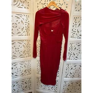 House of Cb Beatrice Wine Corset Midi Dress Size L Large + AND Plus Cup