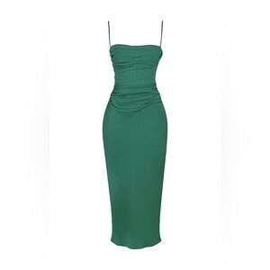 House of Cb Teia Forest Draped Corset Midi Green Dress Tank Size S