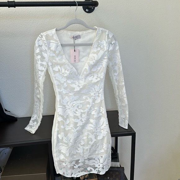 NWT | House of Cb dress | size XS | hidden side zipper | fully lined | tiny faint speck near collar, on the inside, should wash out but worn noticeable when worn-just wanted to disclose