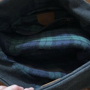 OG House of Flynn tote. Black with gorgeous brown leather. Scottish Rogue plaid interior. EUC. (I thought I remembered there being a small hole in the interior liner, but I can’t find it now… so it may or may not exist. It did not interfere with the use of the bag!)