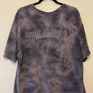 Details: short sleeve t-shirt casual biker bikercore Harley-Davidson tie dye grayscale Smokey punk cool motorcycle ride a legend spell spell out tee arm tag- House of Harley-Davidson Milwaukee USA road