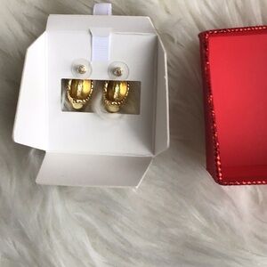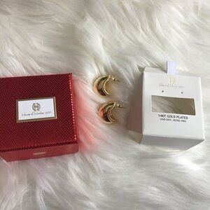 House of Harlow 1960 14KT gold plated 1” teardrop hoop earrings braid detail NWB