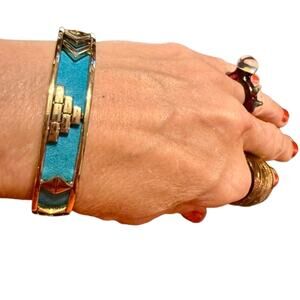 House of Harlow 1960 Aztec Blue Leather Gold Tone Bracelet