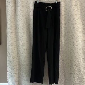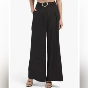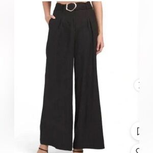 House of Harlow 1960 Black Highwaisted Belted Linen Blend Wide Leg Pants Size 2