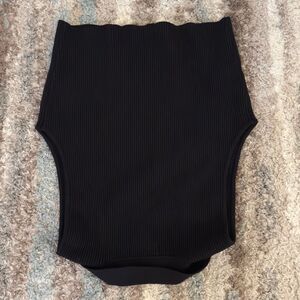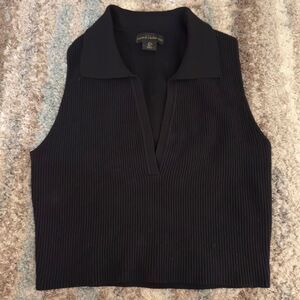 House of Harlow 1960 Black Stretchy Ribbed Collared V-Neck Crop Top L