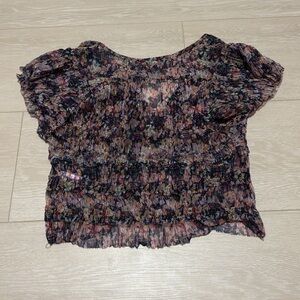 House of Harlow 1960 Blue and Pink Flutter Sleeve Blouse