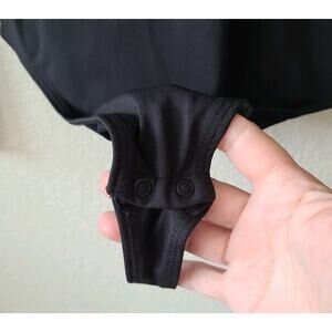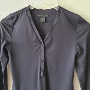 House of Harlow 1960 Bodysuit Henley Women Small Black Minimalist Modern Stretch