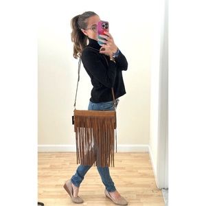 House of Harlow 1960 Brown Leather Crossbody Bag with Fringe