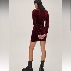 House of Harlow 1960 Burgundy Faux Velvet Button Up Dress Size Small