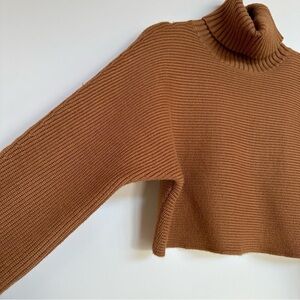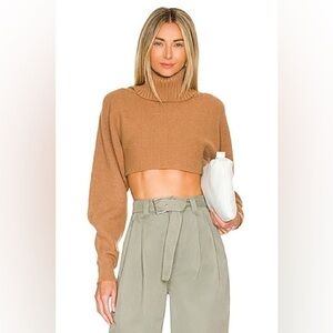 House of Harlow 1960 Camel Cropped Turtleneck Sweater Medium