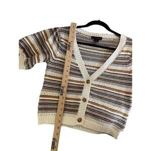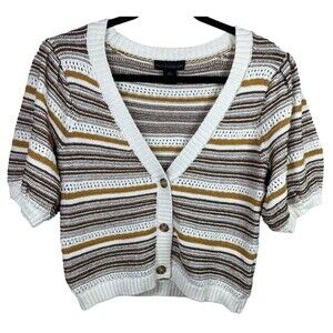 House of Harlow 1960 Cardigan Womens Small Stripe Puff Sleeve Cropped Sweater