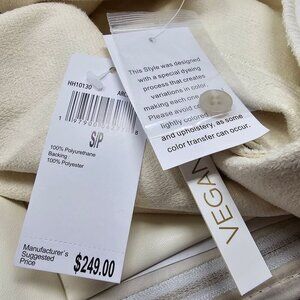 This stylish House of Harlow 1960 cream vegan leather dress is brand new with tags. It's a women's size small, full button up style that can be worn open or closed, made from synthetic material.
