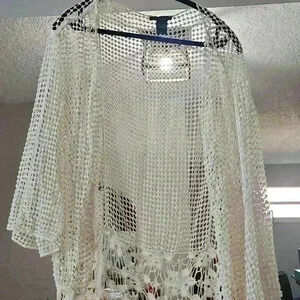 Pre-loved in great condition, crochet kimono. it is one Size fits all. Perfect for a beach cover up or top of your favorite jeans