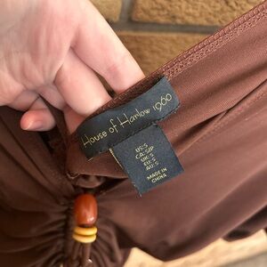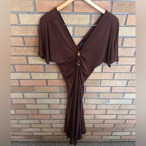 House of Harlow 1960 Draped Ruched Brown Slip Dress Beaded Detail Size Small