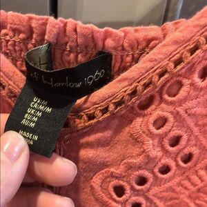 House of Harlow 1960 Dusty Rose Eyelet Embroidered Flounce Dress Size M Boho