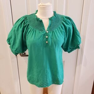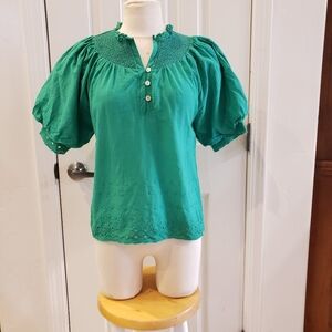 House of Harlow 1960 Emerald Green Medium Eyelet Blouse size Small