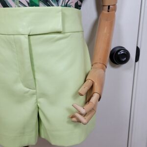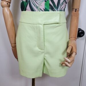 Add a pop of color to your wardrobe with these stunning lime yellow-green shorts from House of Harlow 1960. Crafted from a sleek faux leather material, these structured shorts feature a flattering high-rise waist and modern silhouette—perfect for dressing up or down.