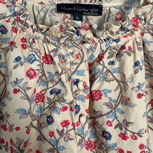 House of Harlow 1960 Floral Boho Cottage Puff Sleeve Blouse Size Large