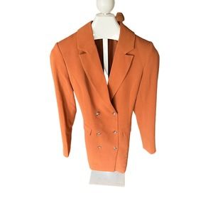 House of Harlow 1960 Ginger double breasted button front blazer. Size medium. Rust red brownish in color. Adjustable belt. Has pockets. Good condition. Chest: 19.5” Sleeves: 23.5” Length: 36”