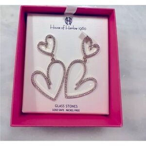 House of Harlow 1960 Gold Glass Stone Heart Earrings new in box