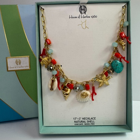 House of Harlow 1960 Gold Shell and Multicolor Necklace 17 + 3”