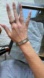 Chic gold bangle with cream textured design. Perfect for any occasion.