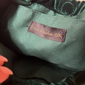 House of Harlow 1960 Green Velvet Handbag Ruched Handle Chain Strap