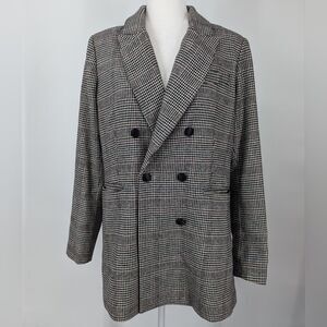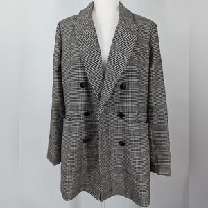 House of Harlow 1960 Houndstooth Wool Blend Double Breasted Blazer Coat Large