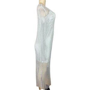 ITEM: House of Harlow 1960 L Gray Mesh Lined Crystal Detail Long Sleeve Maxi Dress