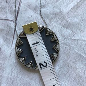 House of Harlow 1960 Leather Sunburst Long Necklace Silver Tone Big Pendant